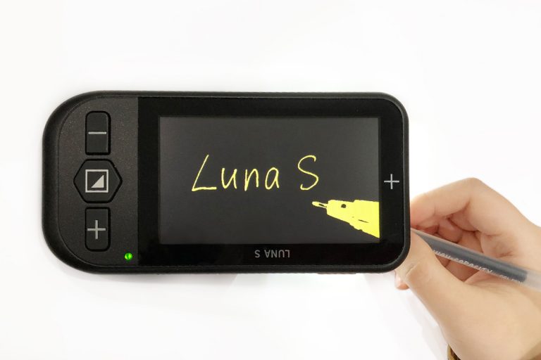 Zoomax Snow Luna handheld video magnifier provides a classic and simple solution for people with visual impairments. Especially for those seniors with severe vision loss, Snow Luna is the best choice to complete their daily tasks, such as recognizing the pills, reading the product labels in the grocery, checking the coins, etc. Snow Luna helps protect your privacy. Your signature is unique and important. With the writing stand on the back of Snow Luna, you can sign on your tax bill, credit card bill and other important documents on your own. The writing stand can be folded when it’s not needed. Signature is easy with Snow Luna.